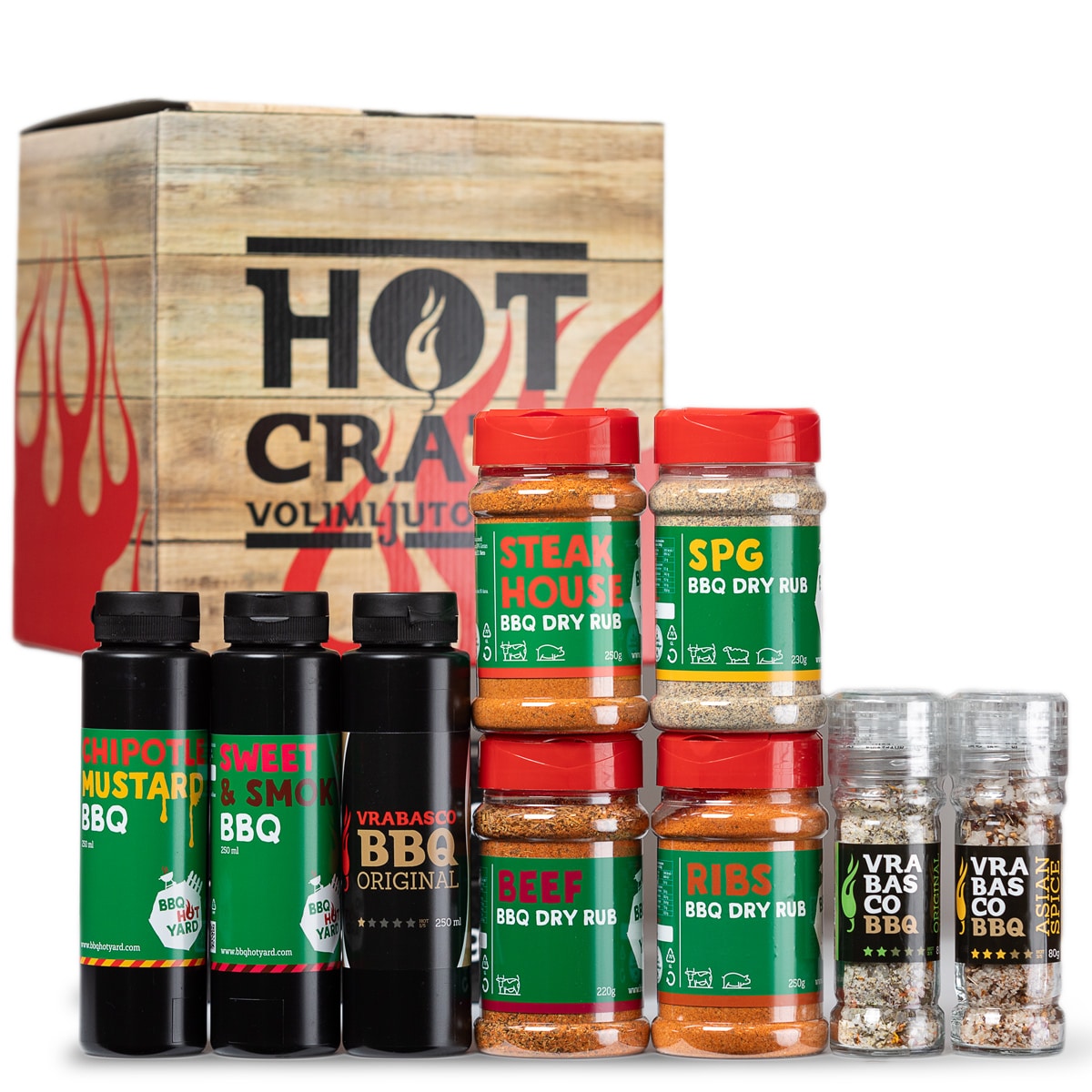 BBQ Master Hot crate je poklon za ljubitelje roštilja! Ovaj poklon paket pun je umaka i začina koji će pravim zaljubljenicima u roštiljanje dati apsolutno sve što im može zatrebati prilikom tog divnog stajanja uz vatru. Nadamo se da ste svjesni da je ovo poklon s predumišljajem, jer osobu koju darujete možete non-stop gnjaviti pitanjima “a kada ćemo probati sve one umake i začine?” i na taj način si osigurati klopu!