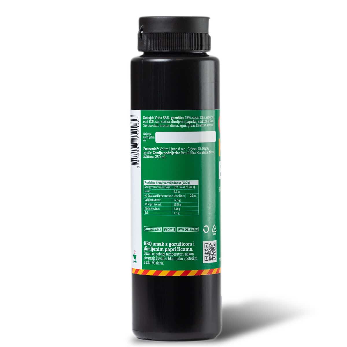 Chipotle Mustard BBQ umak kreirali smo pod BBQ Hot Yard brendom jer je nešto potpuno suprotno onom što inače radimo. Htjeli smo dobiti BBQ umak kojem baza nije rajčica, već gorušica! Nju smo kombinirali s dimljenim papričicama i dobili fantastičnu senfasto-dimljenu kombinaciju koju ćete obožavati na vašim specijalitetima s roštilja! Ovaj umak za roštilj punimo u dvije varijante – 250ml i 750ml!