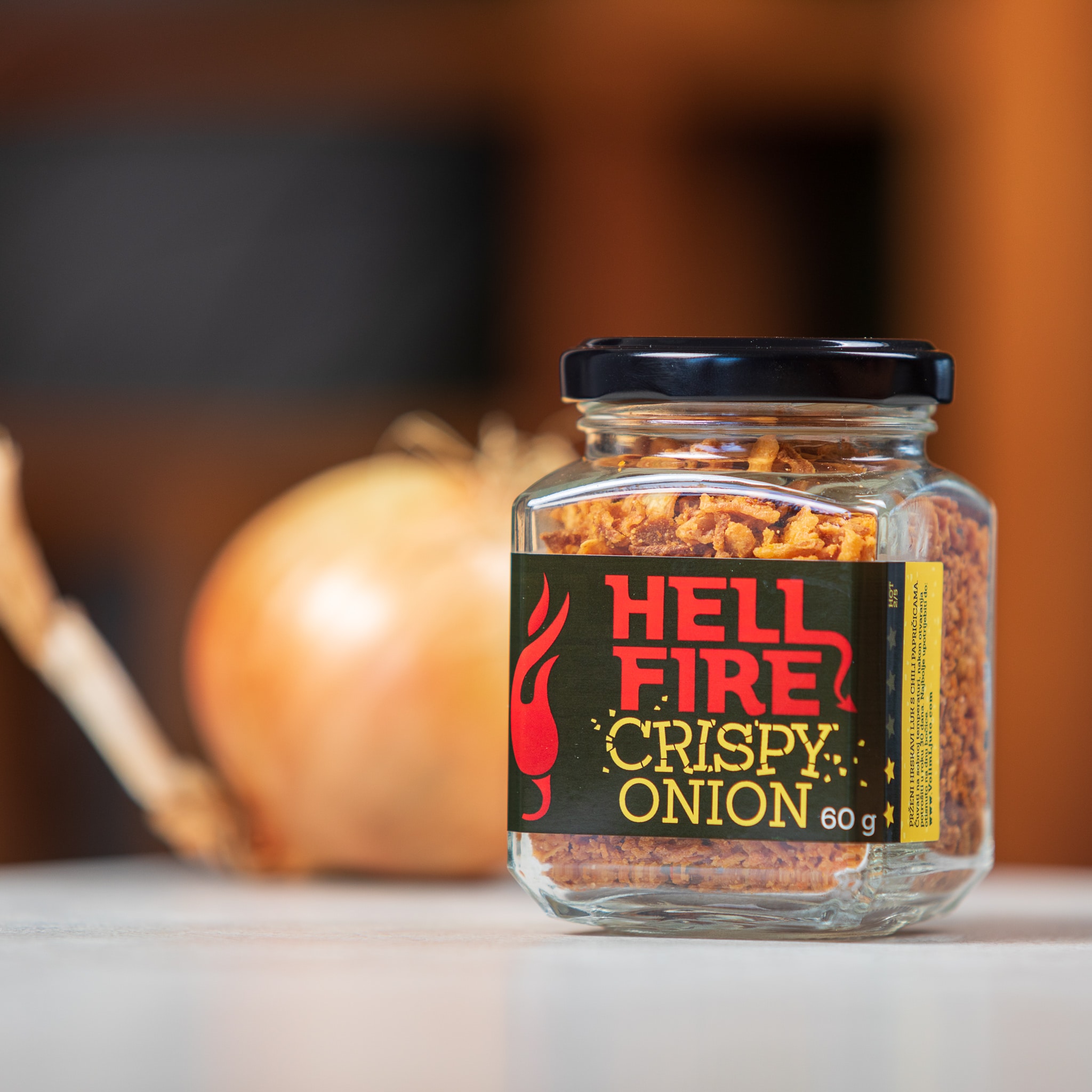 Hellfire Crispy Onion prženi je luk koji smo pomiješali sa Habanero papričicama kako bismo dobili laganu dozu ljutine, a zadržali onaj prepoznatljiv okus koji ima. Prženi luk možete koristiti kao dodatak sendvičima, hot dogovima ili već gotovim jelima, a jelima će dati okus (nećete vjerovati) luka sa dozom ljutine i arome Habanero papričica!