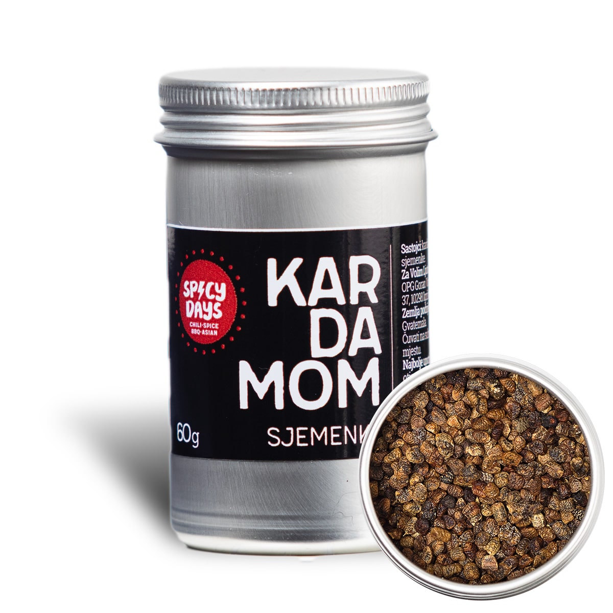 PORIJEKLO: Kardamom je začin porijeklom iz Indije, a uzgaja se i u drugim tropskim regijama, poput Gvatemale i Šri Lanke. Postoje dvije glavne vrste kardamoma: zeleni kardamom (lat. Elettaria cardamomum) i crni kardamom (lat. Amomum subulatum). Zeleni kardamom je najčešća sorta koja se koristi u kuhanju i ima sladak i cvjetni okus, dok crni kardamom ima dimljeni i smolasti okus. Ovaj začin ima bogatu povijest i stoljećima se koristi u kulinarstvu i medicini. Bio je vrlo cijenjen u drevnim civilizacijama i njime se trgovalo duž drevnih ruta začina. Sjemenke se obično vade iz mahuna prije upotrebe. Mahune se otvaraju, a sjemenke se pažljivo uklanjaju.