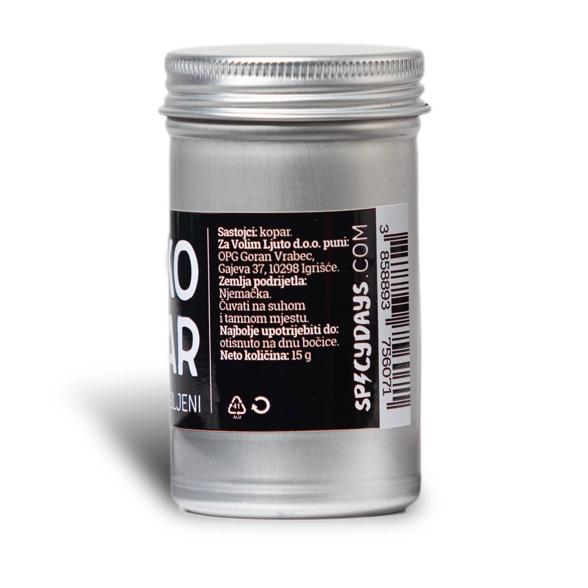 PORIJEKLO: Kopar (lat. Anethum graveolens) je jednogodišnja biljka koja je prepoznatljiva po svojem pernatom zelenom lišću, a njezini plosnati, ovalni plodovi daju sjemenke koje se također mogu koristiti kao začin. Porijeklom je iz mediteranskih zemalja i jugoistočne Europe, danas se naširoko uzgaja u Europi, Indiji i Sjevernoj Americi. Kopar se također pokazao iznimno ljekovitim te ga se još od davnih vremena koristi u te svrhe.