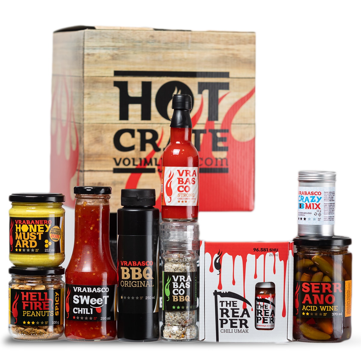 Meet the Heat Hot Crate je poklon paket koji je za one koje želite postepeno uvesti u svijet ljutine, ali kroz selekciju naših najprodavanijih proizvoda! Ovaj poklon bit će idealan za one koji vole ljuto, ali nisu nikada ušli malo dublje u svijet ljutine. S ovim proizvodima će svakako uživati i naučiti što je kvalitetna ljutina!