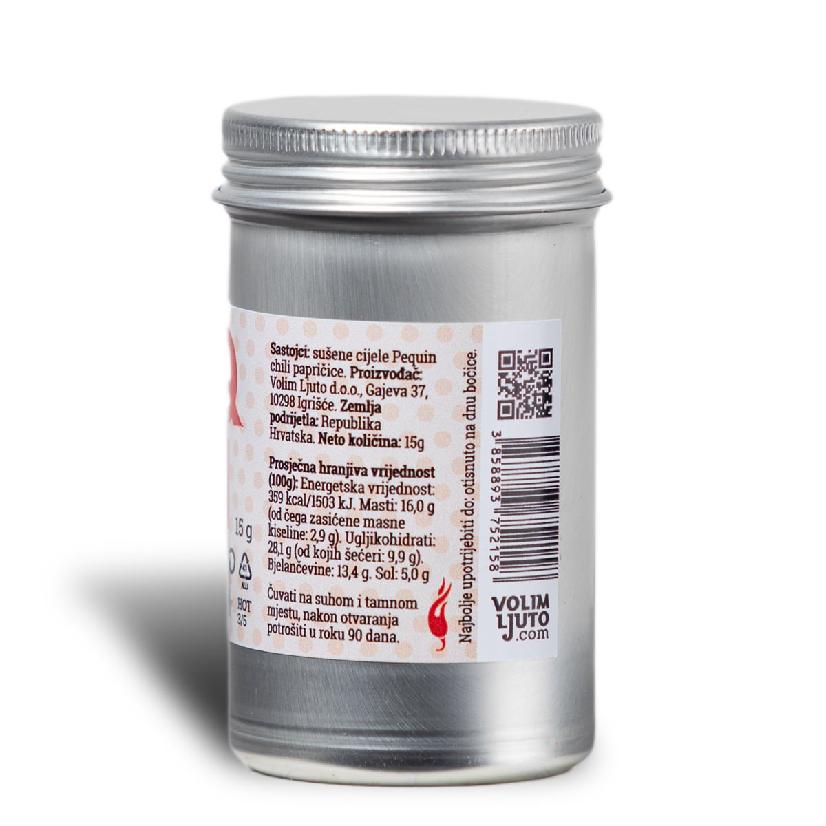 Osušene Pequin papričice pakirane u staklenoj ambalaži koja će vam poslužiti i kad potrošite papričice! Ova vrsta papričica ima zavidnu ljutinu, a osim nje nećete osjetiti previše arome. Idealno za dodavanje u ulja kako biste ih zaljutili.