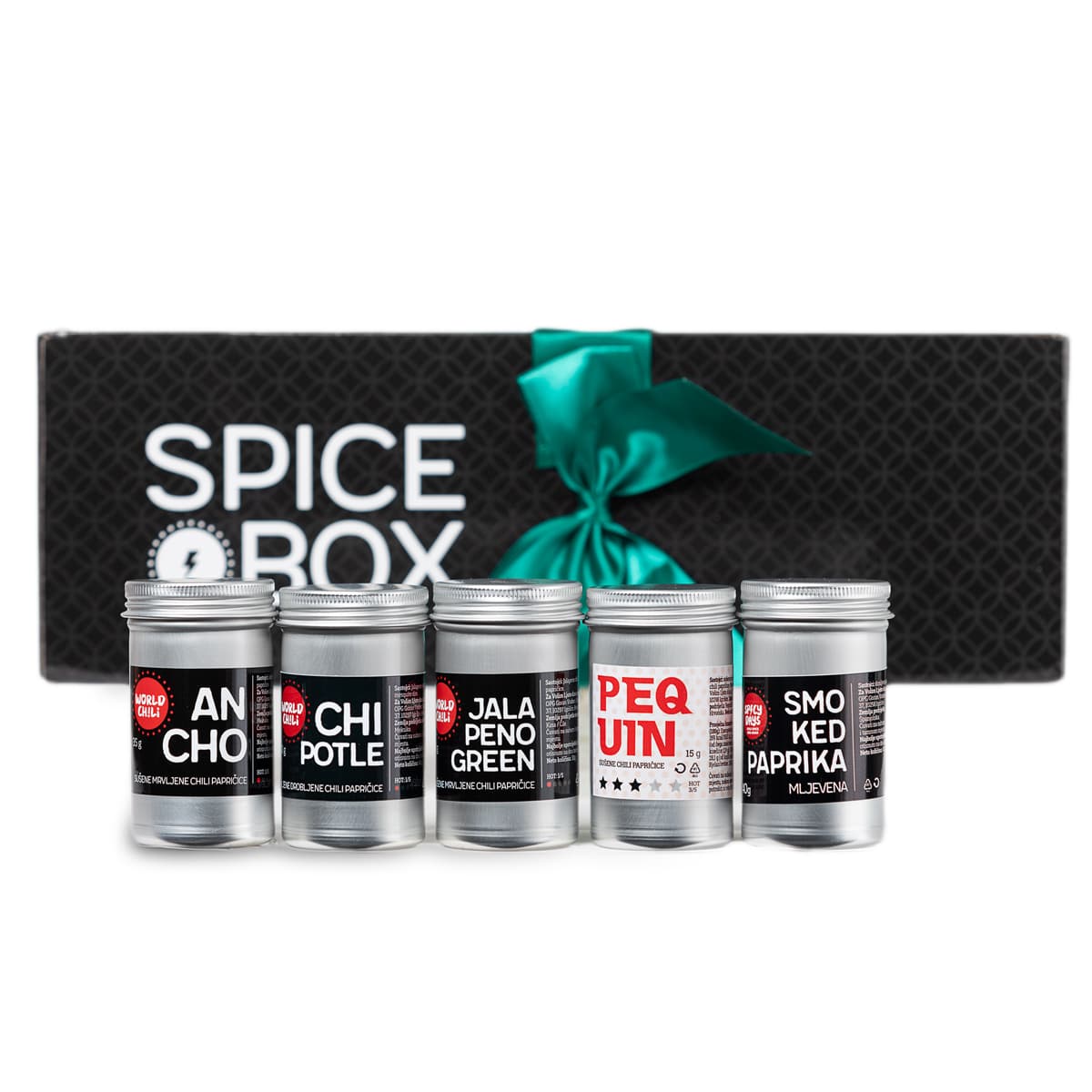 ancho drobljeni, chipotle drobljeni, jalapeno green, pequin, dimljena paprika