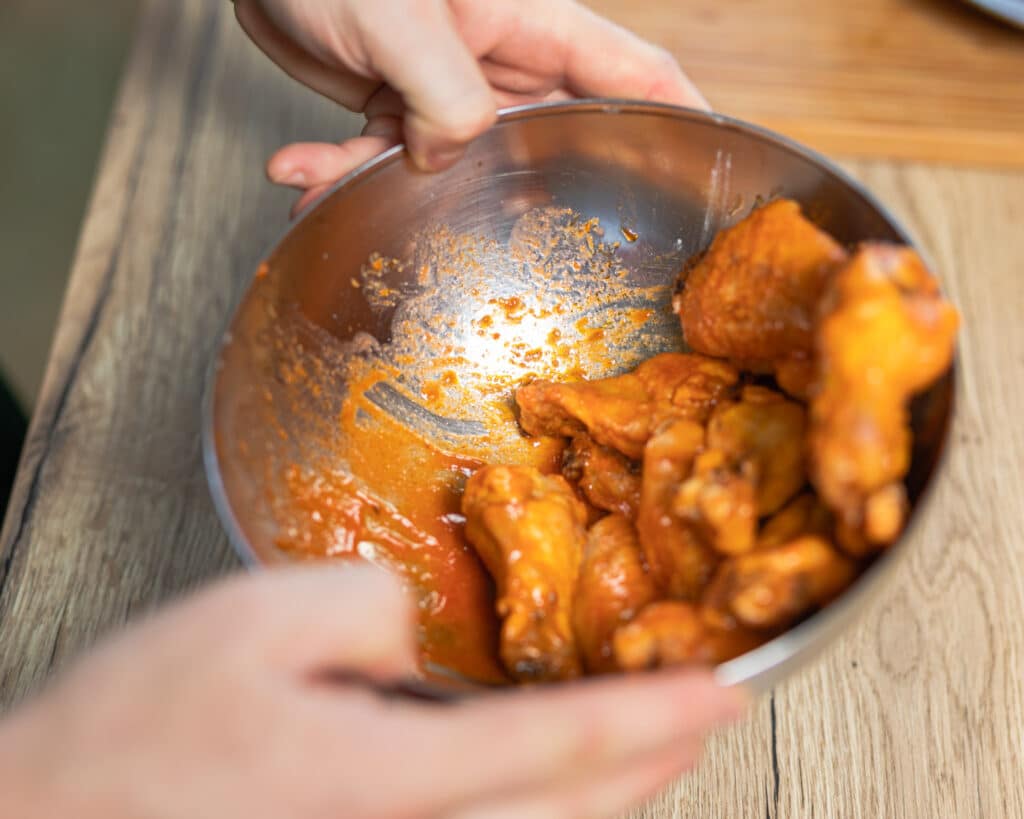 6. Gotova krilca još jednom prelijte ostatkom Buffalo umaka, te dobro izmiješajte.