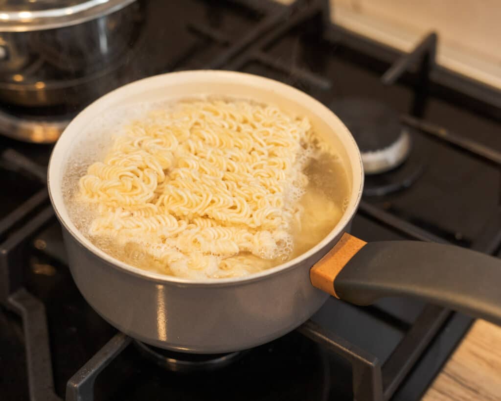 5. Kada su rezanci kuhani, u vodu dodajte začine i ulje iz instant ramen pakiranja, te žlicu soja umaka.